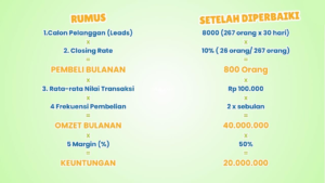 Berikut adalah contoh perubahan omset setelah menerapkan 5 cara menaikkan keuntungan usaha: